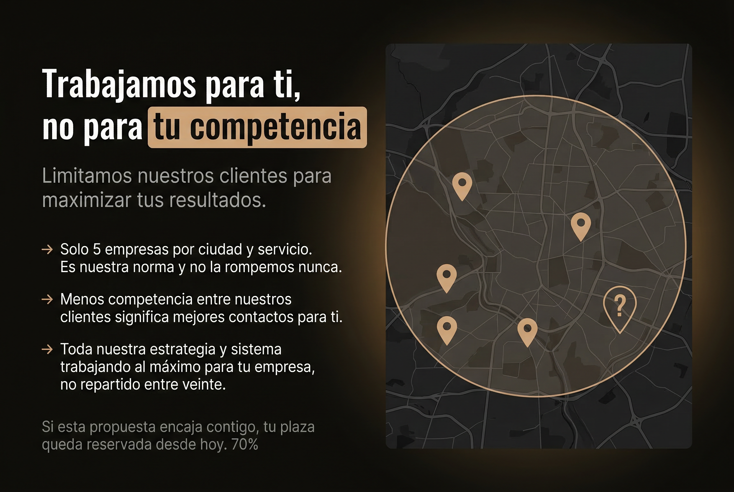¿Sabes por qué solo trabajo con 5 empresas por ciudad y servicio? Porque si meto a 10 carpinteros en la misma ciudad compitiendo entre ellos, ¿qué sentido tiene? Les estaría jodiendo a todos.